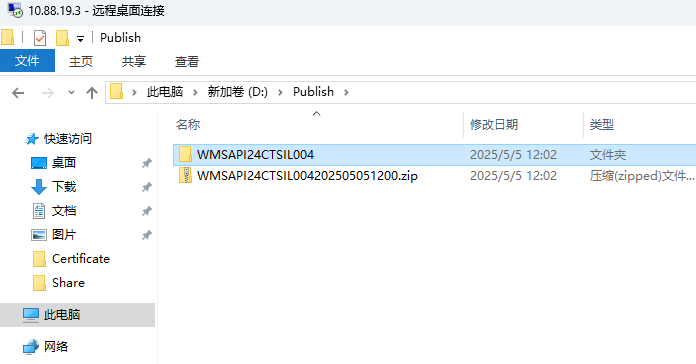 4. 在Publish目录下新建WMSAPI24CTSIL004文件夹
