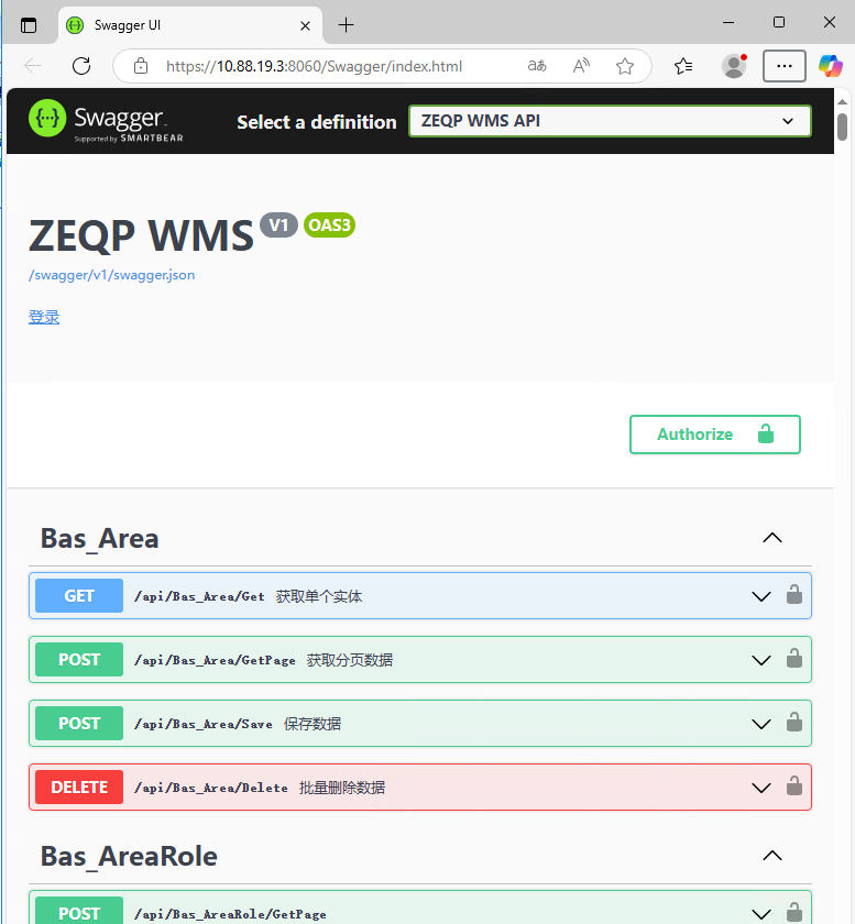 使用浏览器访问 http://10.88.19.3:8050/Swagger