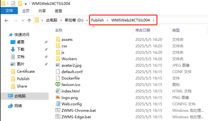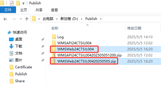 - 在Publish目录下新建WMSWeb24CTSIL004文件夹