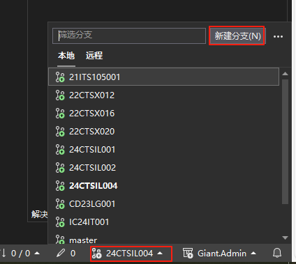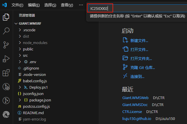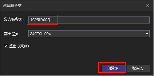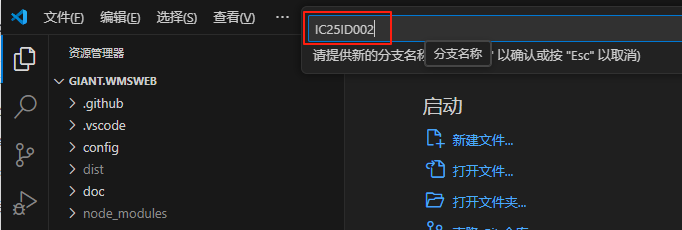 在输入框中输入项目编号为新分支的名称后,按回车键确定