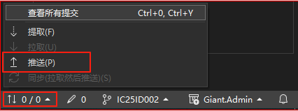 点击“同步”功能,选择“推送”,把新版本分支推送至源代码服务器