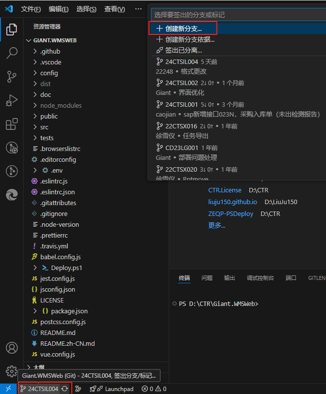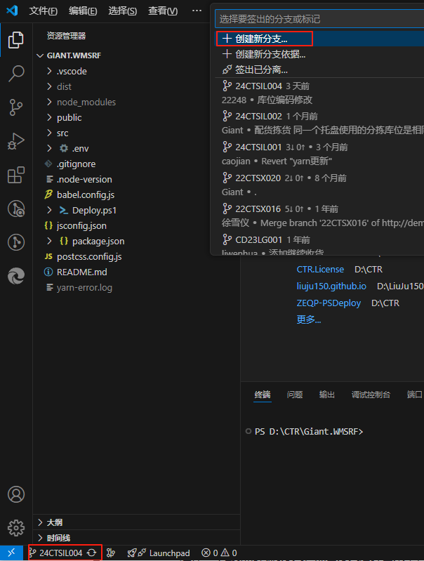 选择一个最新的代码分支,点击分支后弹出菜单,选择“创建新分支”