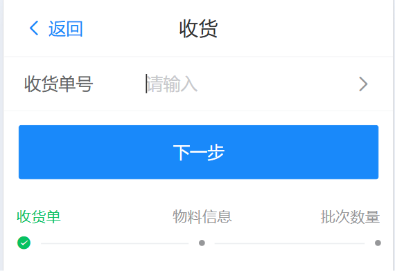 进入RF端页面,点击 功能 》收货,输入收货单号,点击下一步